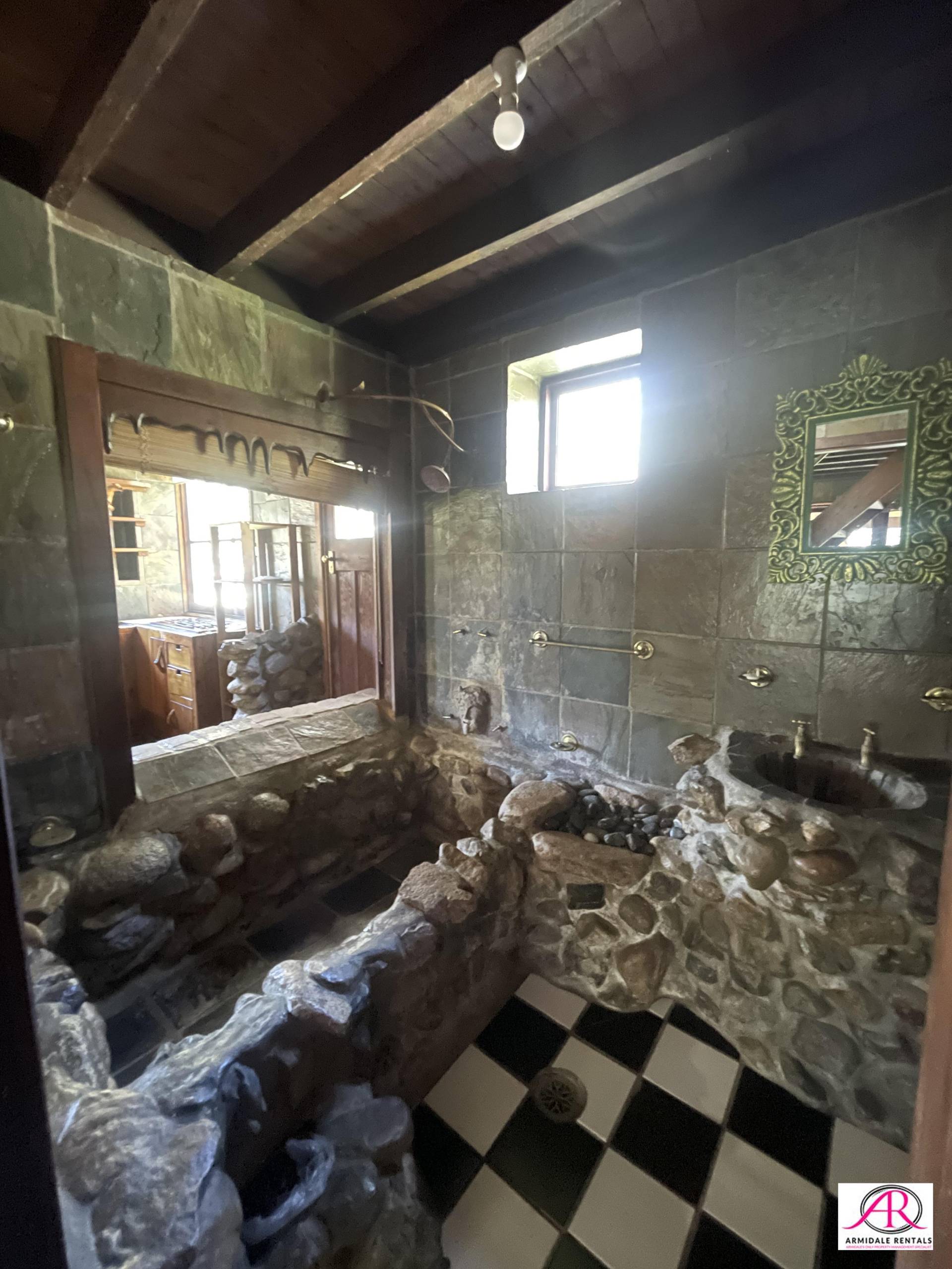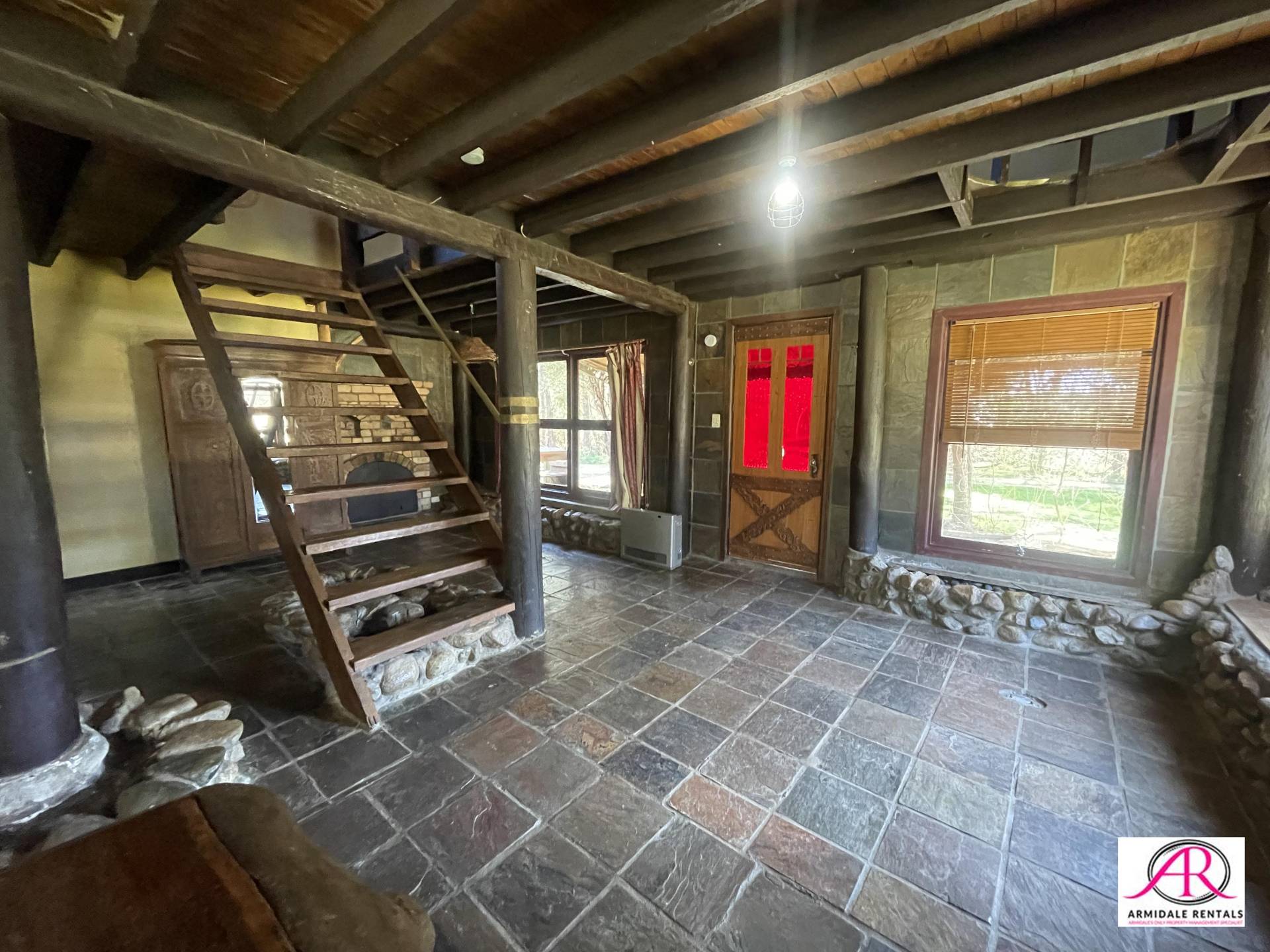 Large open mezzanine upstairs that can house or sleep many. Built in chook cage outside and indoor rock gardens. Good heating.